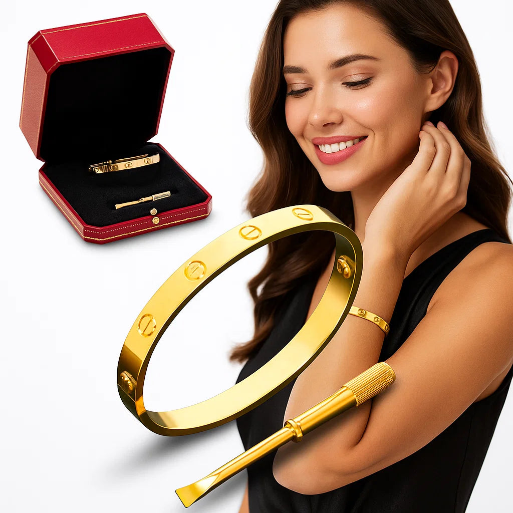 1 x Pozlaćena narukvica (žuto zlato) ✓ 1 x Mini zlatni šrafciger za otvaranje ✓ 1 x Luksuzna poklon kutija ✓